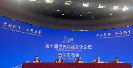 10月19日,第十届世界妈祖文化论坛新闻发布会在北京举行,论坛由文化和旅游部、自然资源部、中国社会科学院、澳门特别行政区政府和福建省人民政府共同主办。