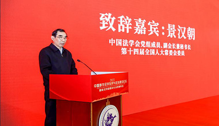 中国法学会党组成员、副会长兼秘书长,第十四届全国人大常委会委员景汉朝致辞 中国法学交流基金会供图